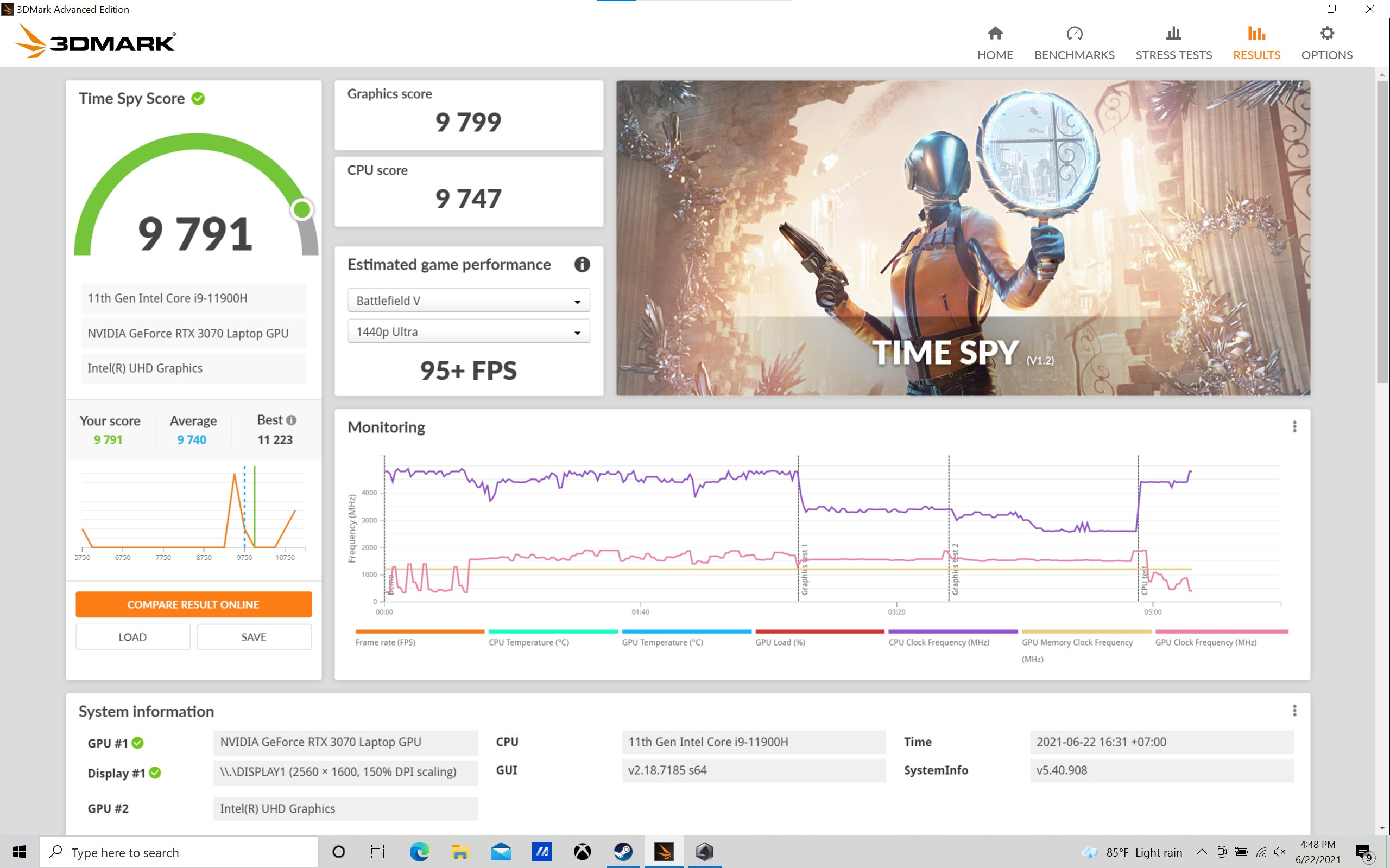 - CPU: Intel Core i9-11900H (8 nhân/16 luồng, xung cơ bản 2.5GHz, xung tối đa 4.9GHz)