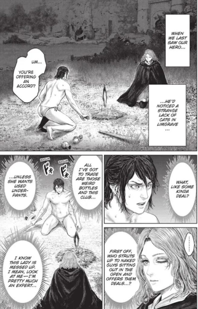 Kadokawa, công ty mẹ của FromSoftware và là một trong những nhà xuất bản manga hàng đầu thế giới, đã quyết định thực hiện dự án này. Nikiichi Tobita, nổi tiếng với bộ manga “Thú Cưng Của Em Gái Tôi Là Ma Kiếm”, sẽ là người đứng ra đảm nhận trọng trách này. Sự kết hợp giữa hai thế giới, một tựa game với bầu không khí u ám cùng lối diễn đạt hài hước, chắc chắn sẽ tạo nên một tác phẩm độc đáo không thể bỏ qua.