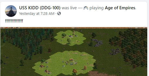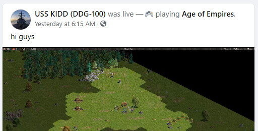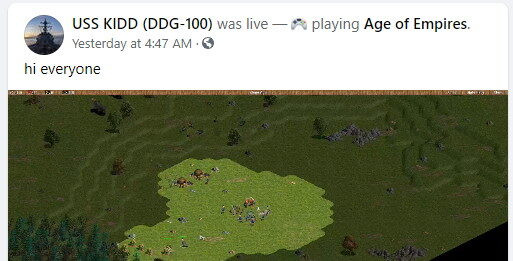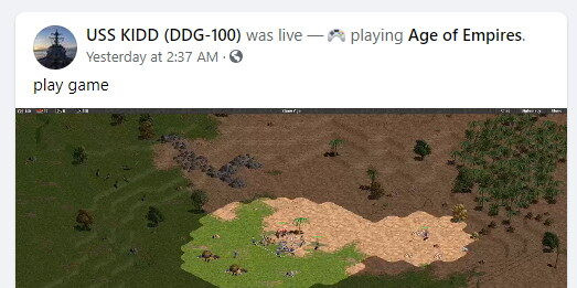 Mới đây, một sự kiện thú vị đã diễn ra liên quan đến chiếc tàu chiến USS Kidd của hải quân Hoa Kỳ. Câu chuyện bắt đầu khi một người đã livestream trò chơi Đế Chế (Age of Empires) trong hàng giờ trên trang Facebook chính thức của USS Kidd. Ban đầu, nhiều người đã nghĩ rằng tài khoản Facebook này bị “hack”, nhưng thực tế lại không phải như vậy.