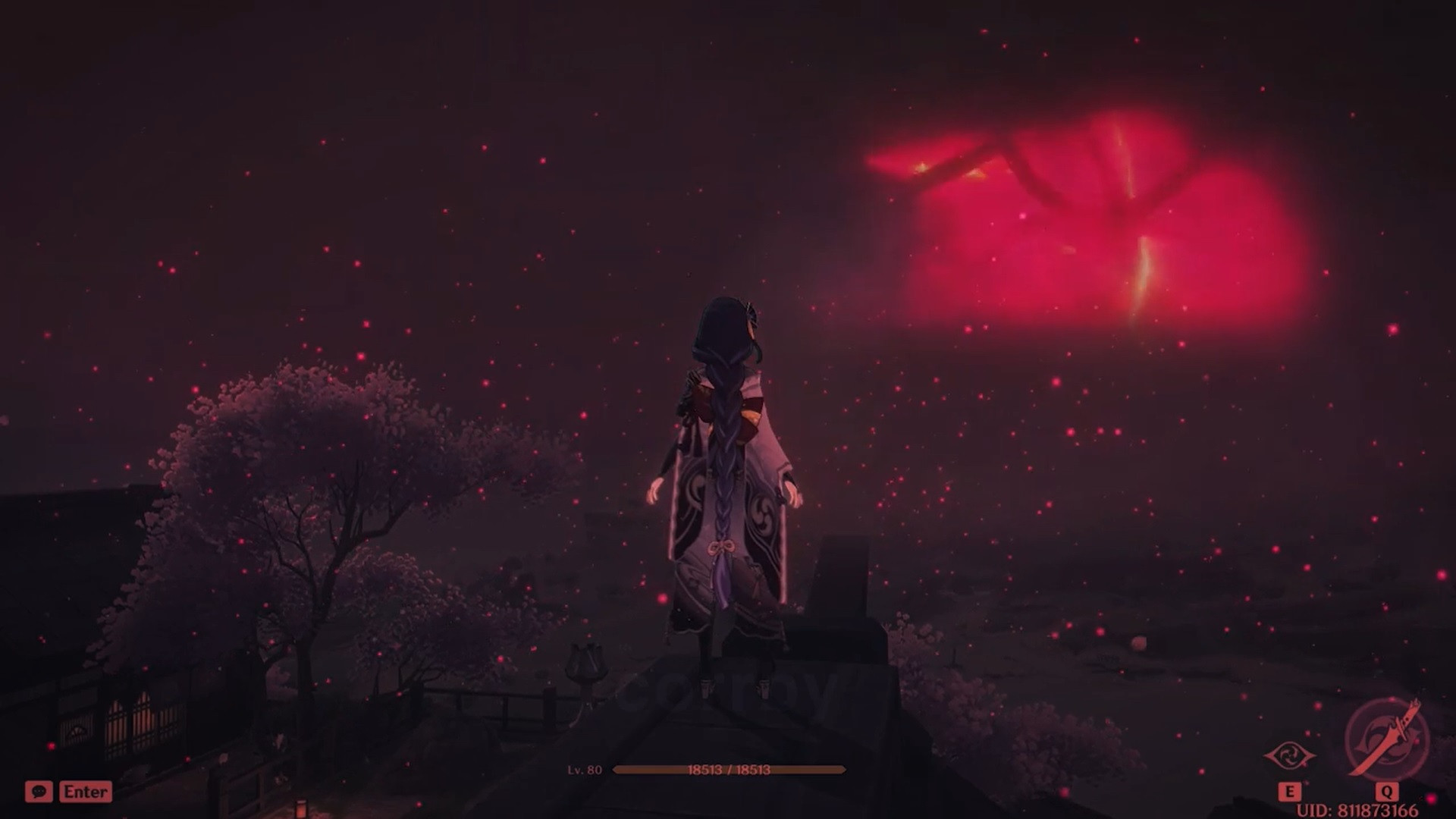 - Video thể hiện hình ảnh Raiden Shogun trên nóc nhà với bầu trời Inazuma đỏ rực, mô phỏng những khoảnh khắc biểu tượng của Stranger Things.