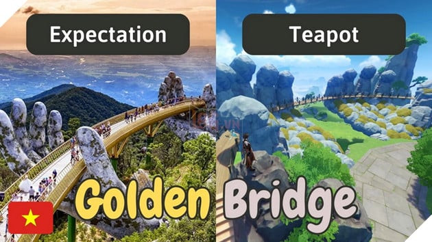 Một game thủ có tên LqVy19 đã chia sẻ trên subreddit của Genshin Impact tác phẩm tái hiện Cầu Vàng với sự đầu tư không nhỏ về mặt chất liệu và hình thức. Công trình này được xây dựng với kỹ thuật tỉ mỉ, thể hiện bàn tay nâng đỡ cây cầu qua từng chi tiết nhỏ. Để hoàn thiện tác phẩm, game thủ này đã phải sử dụng một lượng lớn nguyên liệu, thể hiện sự chăm chút cho từng công đoạn.