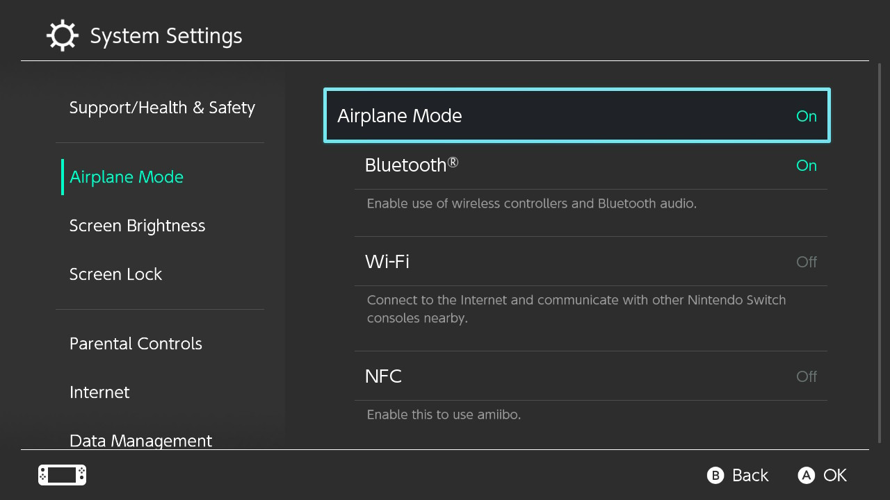 Hình ảnh minh họa cách bật chế độ máy bay trên Nintendo Switch