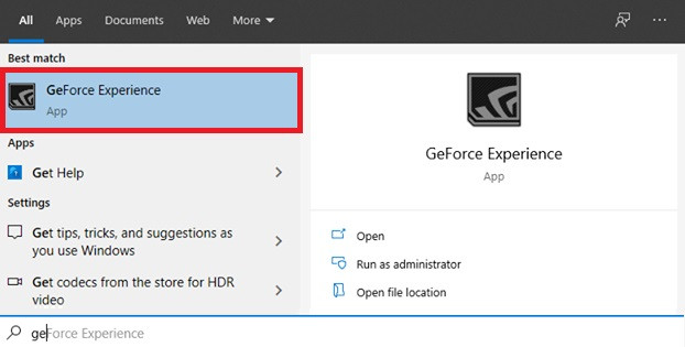 Bấm phím Windows, gõ GeForce Experience và nhấn Enter.