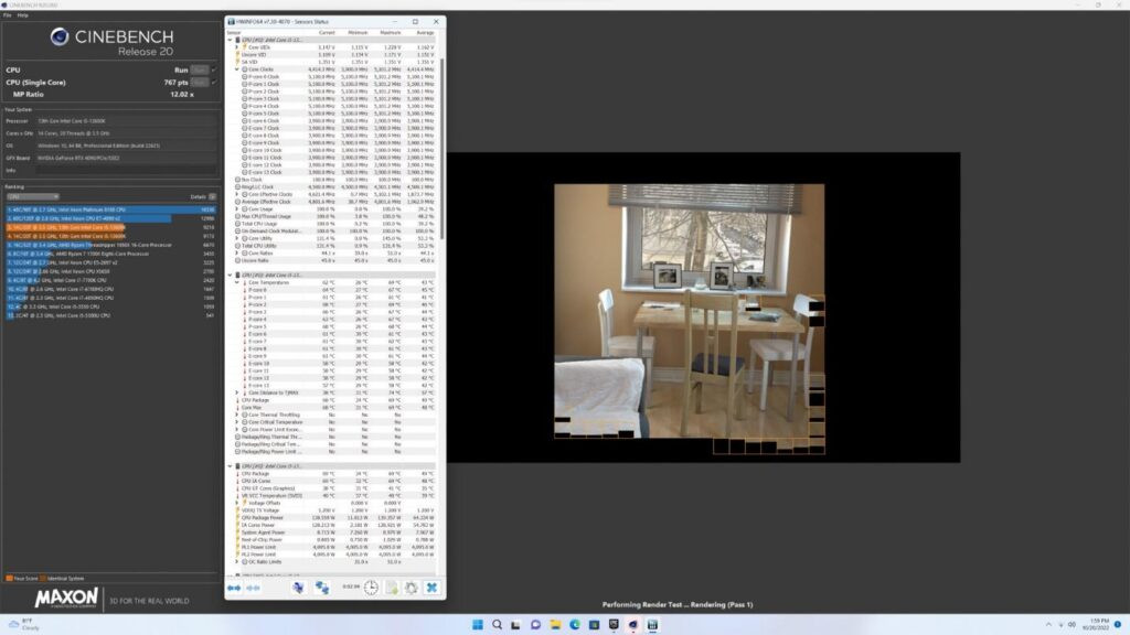 - Cinebench R20 & R23: Trong bài test đa nhân, con chip đạt khoảng 9200 điểm, và trong bài test đơn nhân là khoảng 760 điểm. Đối với Cinebench R23, điểm đa nhân đạt khoảng 24.100 điểm.