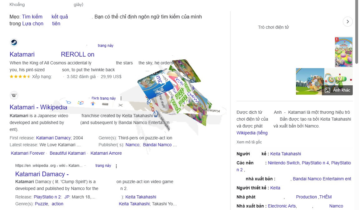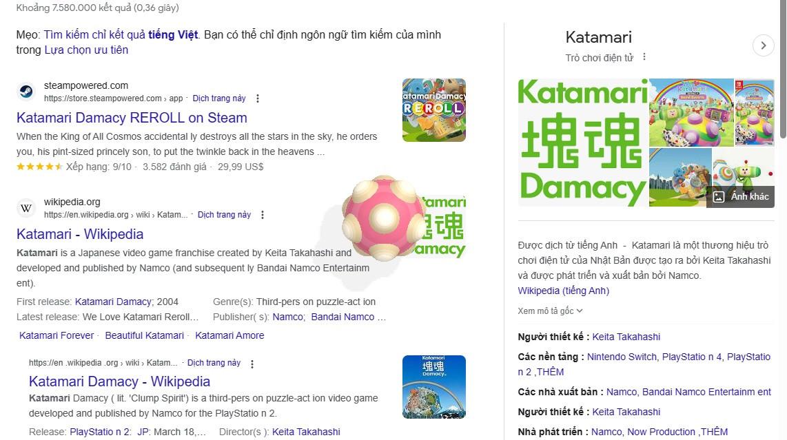 Bước 1: Tìm kiếm trò chơi Katamari trên Google