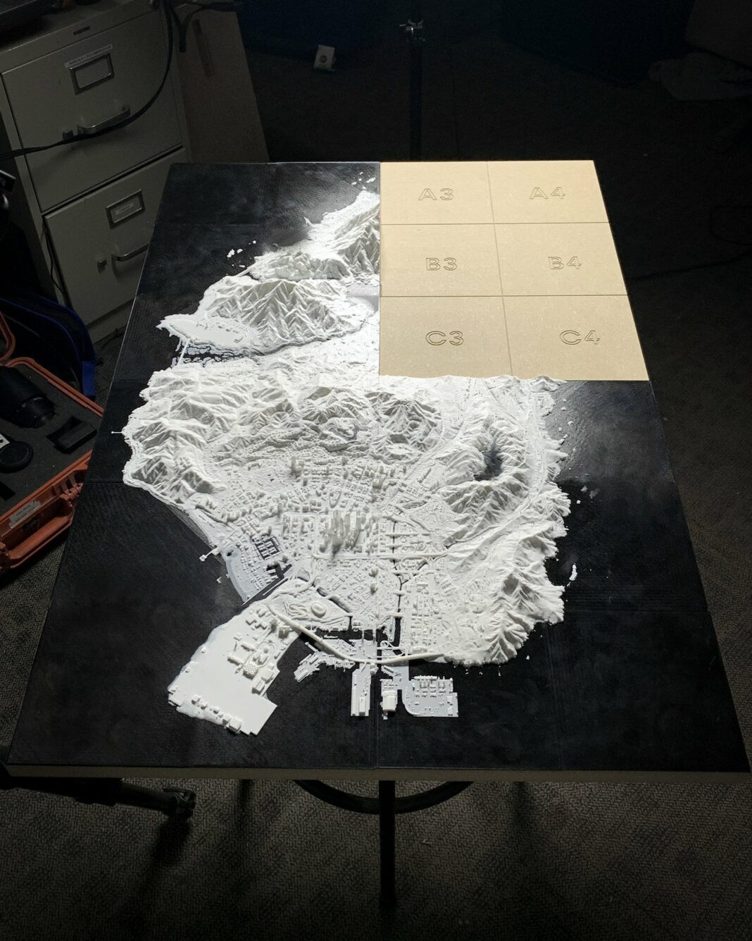 Khi đã thu thập đủ dữ liệu, thách thức lớn nhất xuất hiện: làm thế nào để hợp nhất hàng triệu tọa độ này và tạo nên một bản đồ hoàn chỉnh. Anh phải sử dụng phần mềm để xử lý dữ liệu và một máy in 3D chính xác, in từng ô vuông trên bản đồ. Quá trình in các ô này cũng không hề đơn giản; trong khi các ô đơn giản có thể mất khoảng 1 giờ để in, những ô phức tạp hơn như đất đồi núi hoặc kiến trúc xây dựng có thể tốn tới 12 giờ. Mỗi ô như vậy sử dụng 800MB dữ liệu, vì vậy sự chính xác là điều tối cần thiết, tránh những sai sót có thể khiến các ô không khít chặt với nhau.