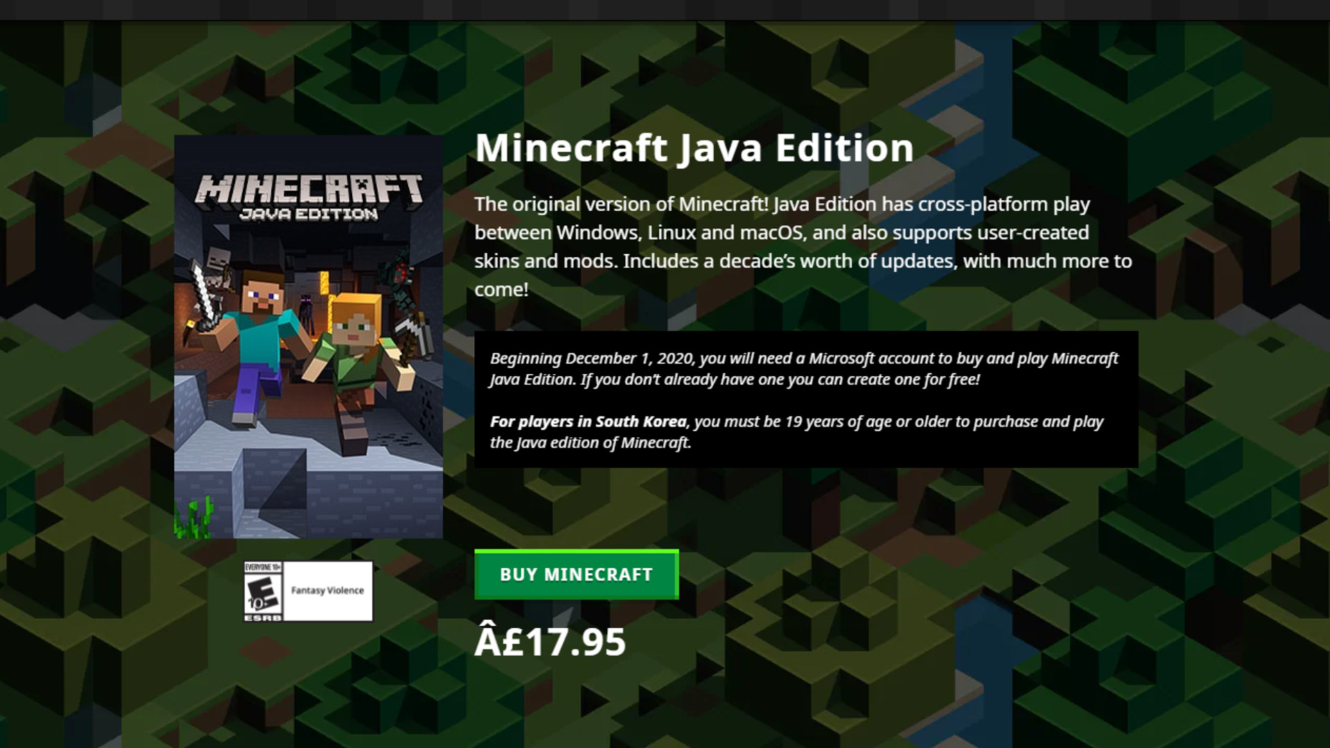 - Microsoft yêu cầu người dùng phải đủ 19 tuổi để tạo tài khoản mới, nhưng người chơi vẫn sử dụng tài khoản Mojang để truy cập.