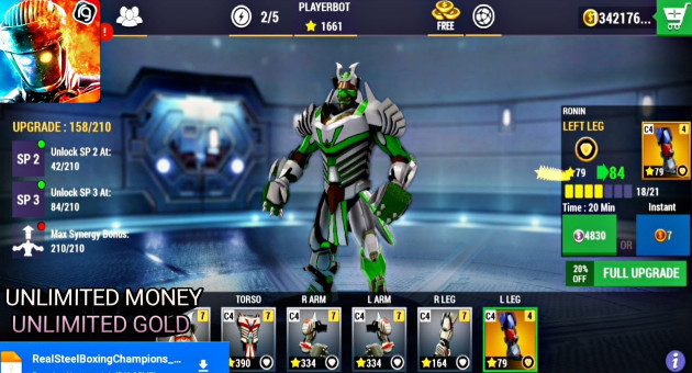 Trò chơi không chỉ có một mà là một chuỗi các chiến binh như Atom, Zeus, Midas và những chiến binh mới. Mỗi robot được trang bị năng lượng dồi dào cùng các chỉ số sức mạnh như giáp, sát thương và tấn công. Bạn có thể tùy chỉnh hơn 1500 bộ phận khác nhau để làm cho robot của mình trở nên độc đáo hơn, từ đầu, thân, tay đến chân. Để có thể thay đổi được các chi tiết này, bạn sẽ cần sử dụng những sao vàng và sao bạc kiếm được từ các trận đấu.