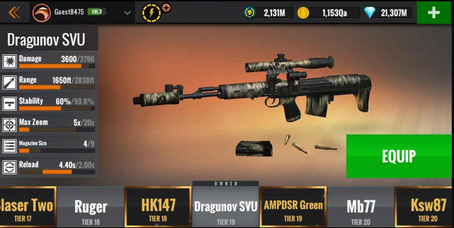 Chúng ta không thể không nhắc đến bộ sưu tập vũ khí đa dạng và chất lượng trong Sniper 3D. Trò chơi luôn cập nhật và cải tiến, mang đến cho người chơi những trải nghiệm tốt nhất. Để có được những vũ khí có chỉ số cao, bạn cần tích lũy rất nhiều điểm thưởng từ mỗi trận đấu. Các loại súng như shotgun có thể gây sát thương mạnh ở khoảng cách gần, nhanh chóng hạ gục kẻ thù. Tuy nhiên, chúng cũng có điểm yếu là thiếu sự di chuyển linh hoạt, và khi kẻ địch đến gần, bạn có thể phải đối mặt với nguy hiểm lớn.
