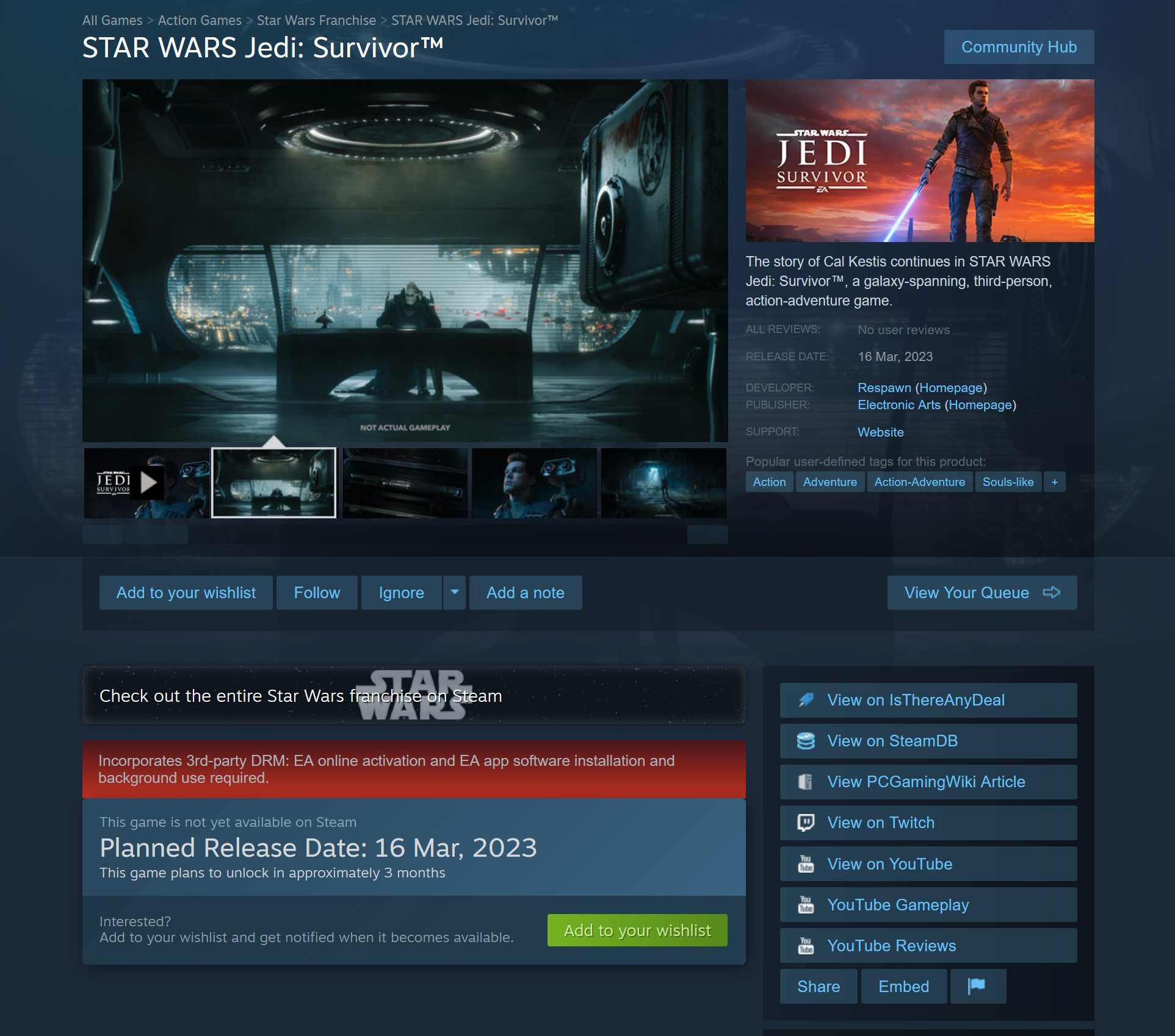 - Ngày phát hành của Star Wars Jedi: Survivor được xác nhận là 16/3/2023.