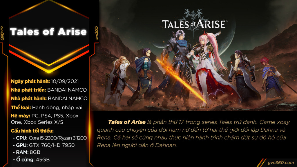 Tales of Arise, phần mới nhất trong series game nhập vai nổi tiếng Tales, đã gây bão ngay từ khi ra mắt vào năm 2021. Tựa game đưa người chơi vào một cuộc hành trình hấp dẫn trong một thế giới bị chia lìa giữa Dahna – một vùng đất còn mang nét trung cổ và Rena – nơi sở hữu công nghệ và phép thuật hiện đại. Với lực lượng áp đảo, Rena đã kiểm soát Dahna, cướp bóc tài nguyên và xem người dân nơi đây như nô lệ.