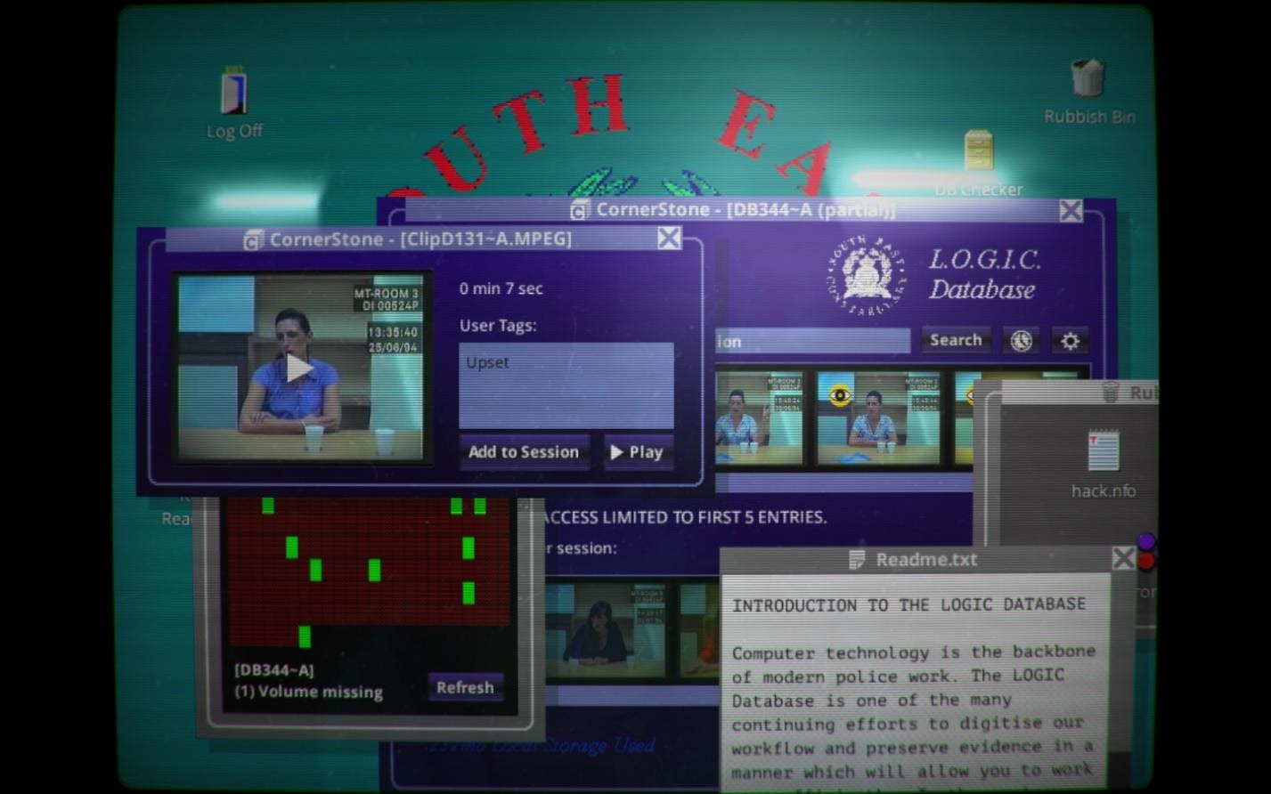 Her Story là một tựa game khác biệt với cách tiếp cận độc đáo – sử dụng video live-action. Người chơi sẽ ngồi trước một màn hình máy tính cũ, xem các đoạn video phỏng vấn của một nghi phạm để tìm hiểu về vụ án giết người.