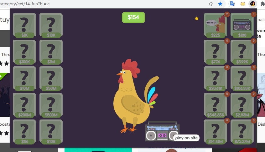 Cách chơi rất đơn giản, bạn chỉ cần click chuột vào chú gà để cho nó rap. Mỗi lần click, số tiền sẽ tăng lên. Số tiền này được sử dụng để mua các vật phẩm giúp chú gà của bạn phát triển khả năng, tăng tốc độ kiếm tiền.