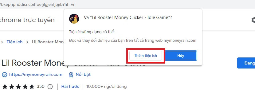 Một thông báo xác nhận sẽ xuất hiện. Bạn chọn Thêm tiện ích để tiếp tục.
